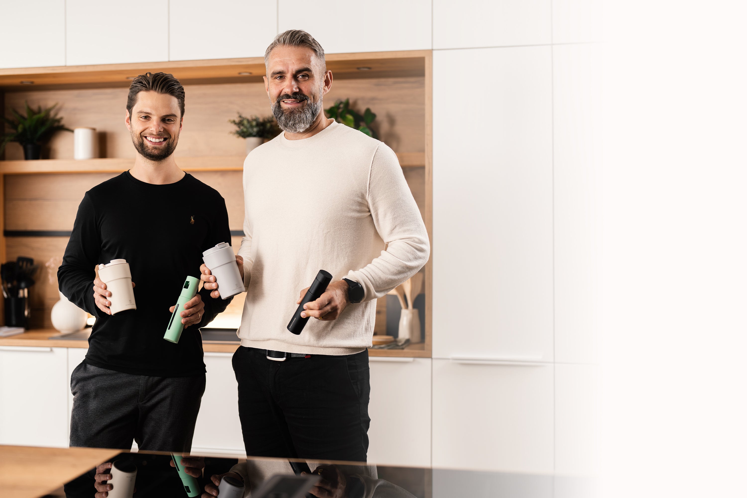 wir sind Jonas und Joachim, zwei leidenschaftliche Köche, Designliebhaber und die Gründer der Marke Schmidt & Kramer.