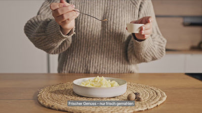 - FRISCHER GENUSS – Entfalte das volle Aroma von Muskat, Tonkabohnen & Co.! Nur frisch gemahlene Muskatnüsse verleihen Kartoffelgerichten, Bechamelsaucen, Gemüse oder Gebäck ihr unverwechselbares, würzig-süßes Aroma.